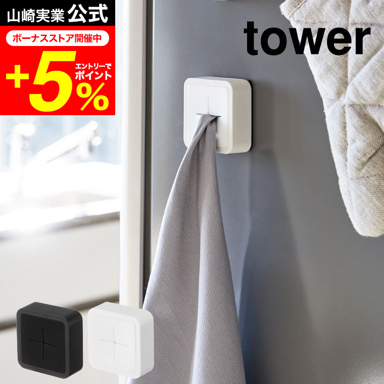 tower 山崎実業 マグネットキッチンタオルホルダー タワー キッチン 公式 ホワイト/ブラック 磁石 冷蔵庫横 ふきん タオル掛け タオルハンガー 洗面
