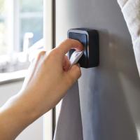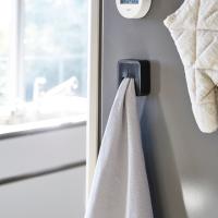 指で差し込むだけのタオルホルダー。冷蔵庫などにマグネットで簡単取り付け。タオルや布巾を指で差し込むだけ。