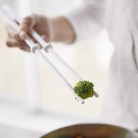 菜箸の先を浮かせて置ける菜箸キーパー付き。直置きにならずに清潔。菜箸キーパーの位置調節で、お鍋にちょい掛けも。シリコーン製で滑りにくく、フライパン・ナベなどを傷つけません。グリップは長時間の調理でも疲れにくい軽いナイロン芯材。太めで転がりにくい角型形状。麺や小さい食材が滑りにくく、しっかりつかめます。菜箸キーパーは菜箸に差し込んで位置を調節してご使用ください。菜箸キーパーはお好みで取り付けてご使用ください。