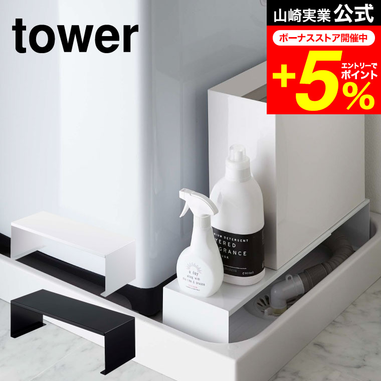 tower 山崎実業 伸縮洗濯機排水口上ラック タワー 洗濯 公式 ホワイト/ブラック 洗濯機横 洗濯ホース 収納 棚 台 ランドリー収納 送料無料