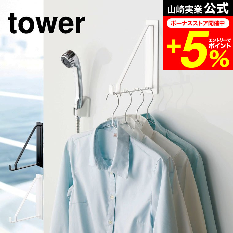 tower 山崎実業 マグネットバスルーム物干しハンガー タワー 洗濯 公式 ホワイト/ブラック 送料無料 磁石 浴室乾燥 洗濯物 浴室 耐荷重 約2kg