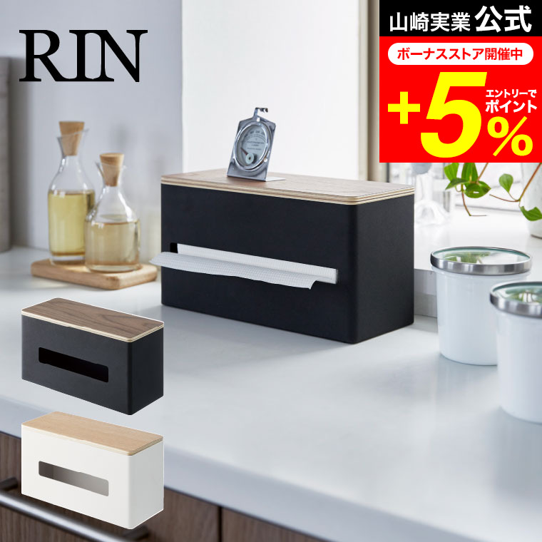 RIN 山崎実業 両面ティッシュケース リン インテリア 公式 ブラウン/ナチュラル ペーパータオル ボックスティッシュ ビニール袋 ポリ袋 収納 送料無料