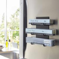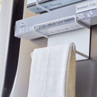 強力マグネットで冷蔵庫にくっつけるだけ!ラップやホイルを置くだけの簡単収納!フリーザーバッグなどの大きめのボックスも収納可能!取り出しやすいシンプルな構造。タオルなどを掛けて使用できます。
