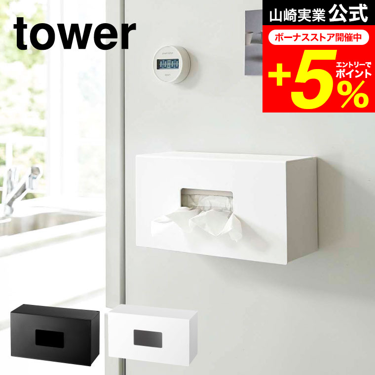 tower 山崎実業 前から開くマグネットボックスホルダー L タワー キッチン 公式 ホワイト/ブラック 5066 5067 送料無料 ストッカー キッチン収納