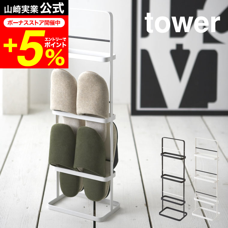 tower 山崎実業 スリッパラック タワー インテリア 公式 ホワイト/ブラック 6098 6099 送料無料 スリッパ掛け スリッパ置き 玄関収納 来客