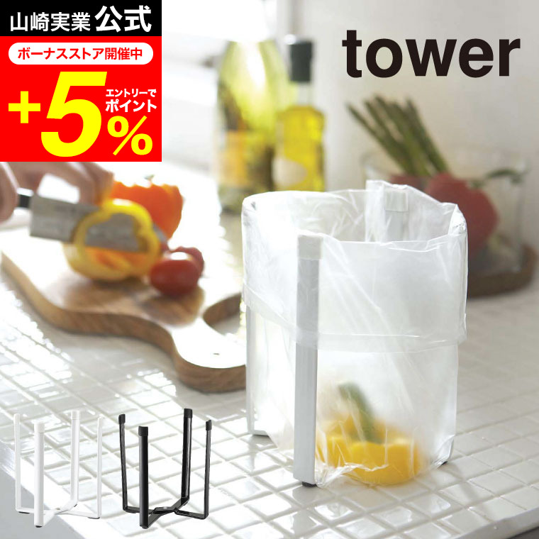 tower 山崎実業 ポリ袋エコホルダー タワー ゴミ箱 公式 ホワイト/ブラック 6787 6788 ゴミ袋ホルダー ゴミ袋スタンドごみ箱 卓上