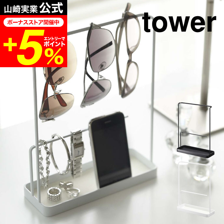 tower 山崎実業 サングラス&アクセサリースタンド タワー 小物入れ 公式 ホワイト/ブラック 6987 6988 送料無料 アクセサリーケース ネックレス