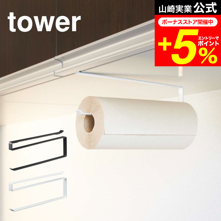 tower 山崎実業 戸棚下キッチンペーパーホルダー タワー キッチン 公式 ホワイト/ブラック 7115 7116 吊り戸棚 吊り キッチンペーパー キッチン