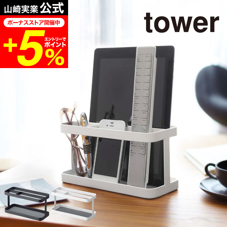 tower 山崎実業 タブレット&リモコンラック タワー 小物入れ 公式 ホワイト/ブラック 7303 7304 送料無料 タブレットスタンド iPadスタンド