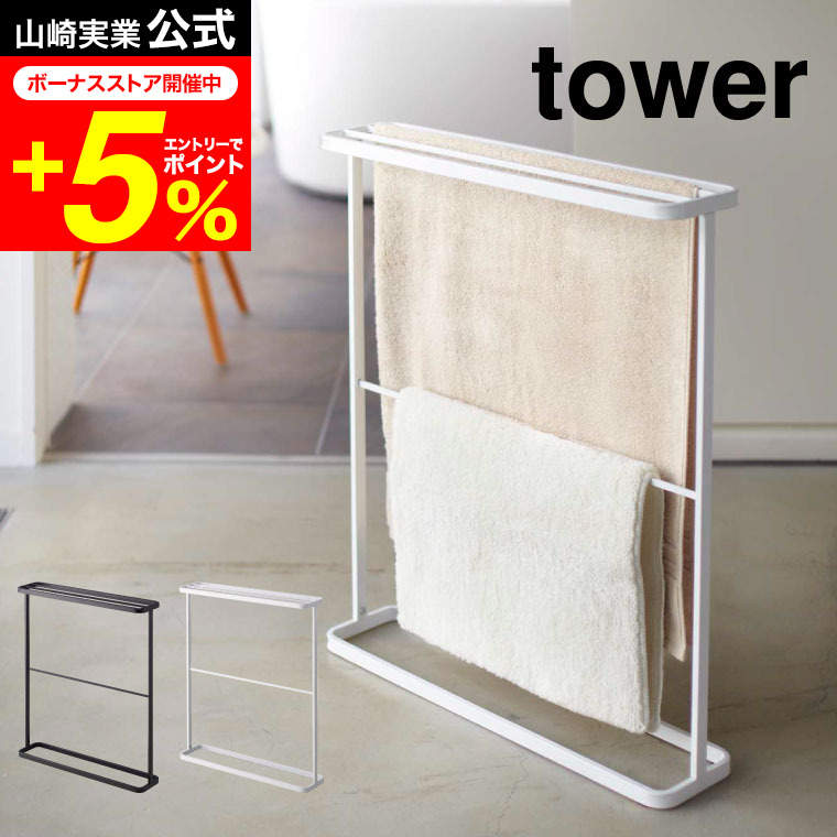 tower 山崎実業 バスタオルハンガー タワー 公式 ホワイト/ブラック 7465 7466 送料無料 バスタオル掛け 省スペース バスタオルラック