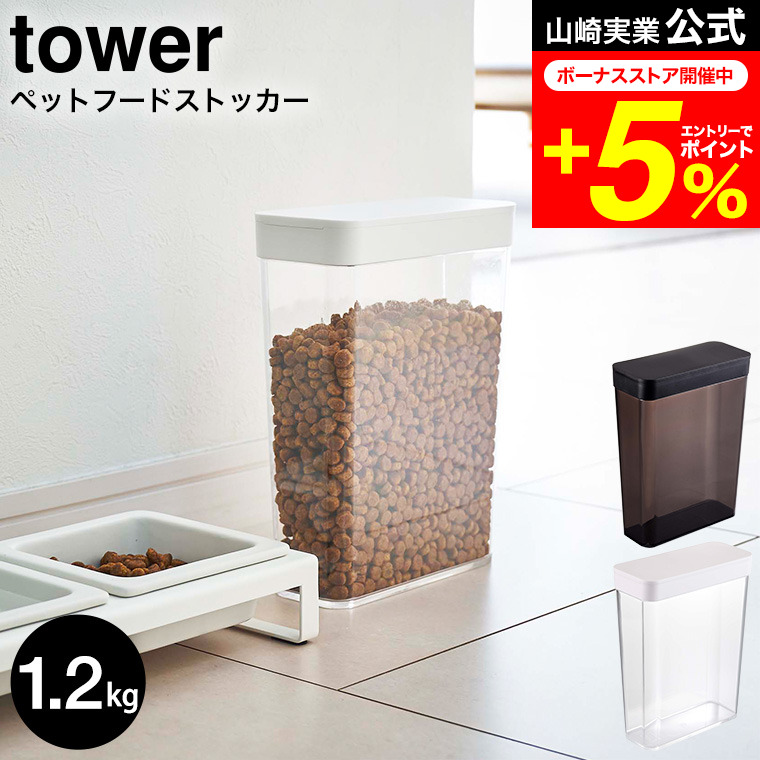 tower 山崎実業 ペットフードストッカー タワー 公式 1.2kg ホワイト/ブラック 5607 5608 / 送料無料 フードフード ストッカー 保存容器