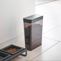 リビングやキッチンにそのまま置けるスタイリッシュなペットフードストッカー。蓋をパチッとロックしておけば、湿気・酸化・臭い漏れを防いでくれます。直接注ぐだけ スリムだから持ちやすいサイズ。スライド式キャップ 両方向に開閉することが可能。洗えるから衛生的 部品は全て分解して洗えるので衛生的です。