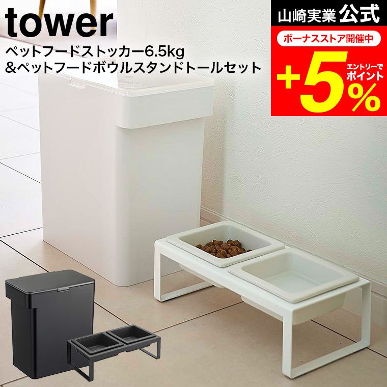【密閉ペットフードストッカー タワー 6.5kg 計量カップ付】