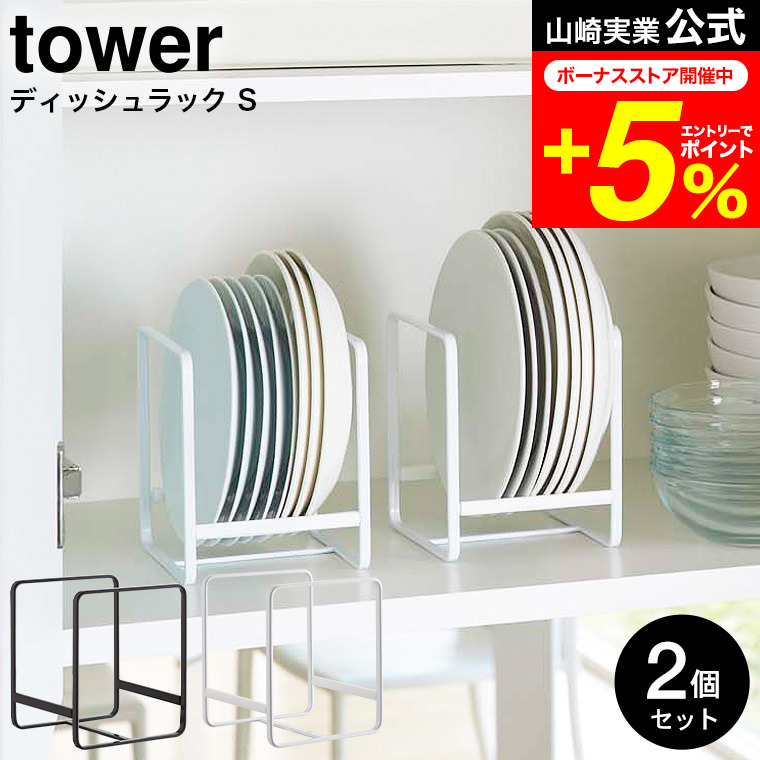 tower 山崎実業 ディッシュラック S タワー 公式 2個セット ホワイト/ブラック 2270 2271 送料無料 / 食器棚 キッチン 収納 お皿立て