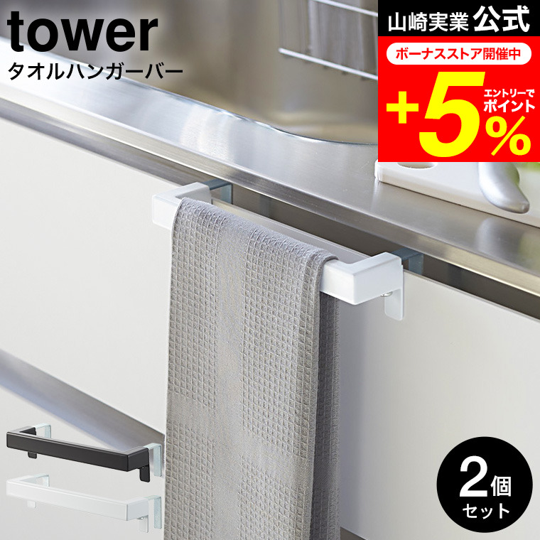 tower 山崎実業 キッチンタオルハンガーバー タワー 公式 2個セット ホワイト/ブラック タオル掛け シンク下 シンク周り 2853 2854 送料無料