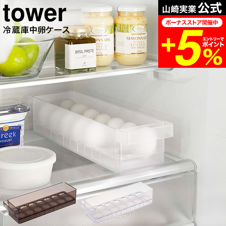 tower 山崎実業 冷蔵庫中卵ケース タワー キッチン 公式 ホワイト / 送料無料 ブラック 5764 5765