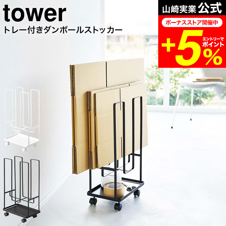 tower 山崎実業 トレー付きダンボールストッカー タワー 小物入れ 公式 ホワイト / ブラック 5760 5761 送料無料