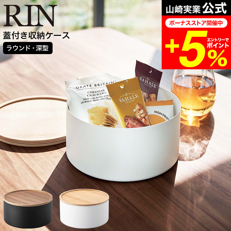 RIN 山崎実業 蓋付き収納ケース リン 小物入れ 公式 ラウンド 深型 ブラウン / ナチュラル 5802 5803 送料無料