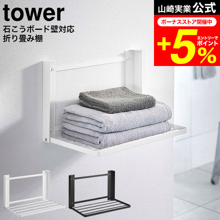 不要な時は折り畳めてお部屋をスッキリ魅せることができるtowerの「石こうボード壁対応 折り畳み棚」。生活感を感じない、まるでホテルの一室のような空間を演出できます。