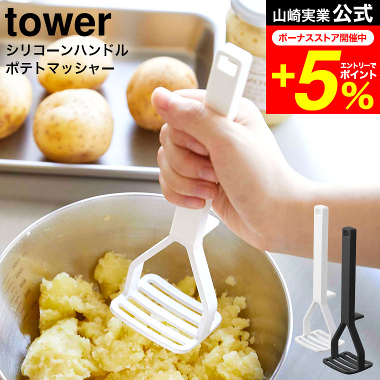 tower 山崎実業 シリコーンハンドル ポテトマッシャー タワー 公式 ホワイト/ブラック 6360 6361 / じゃがいも つぶす ジャガイモつぶし器