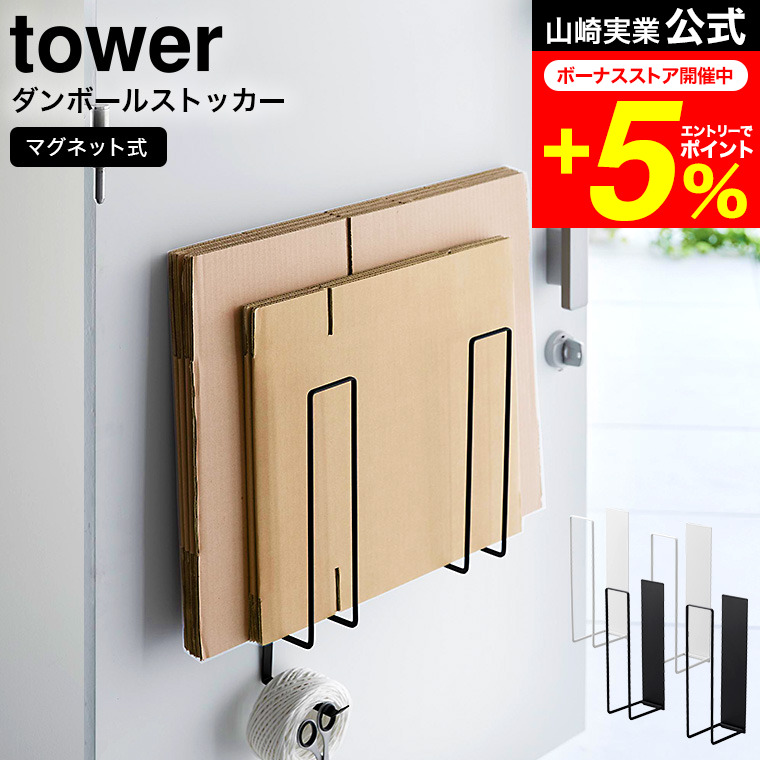 tower 山崎実業 マグネットダンボールストッカー タワー 公式 ホワイト/ブラック 3948 3949 送料無料 / 段ボール ラック 資源ゴミ 分別 冷蔵庫 玄関 取り付け