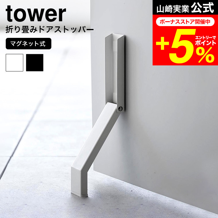 tower 山崎実業 マグネット折り畳みドアストッパー タワー インテリア 公式 マグネット 送料無料 3720 3721 ホワイト ブラック / 玄関ドア 玄関扉
