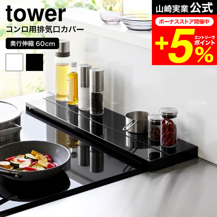tower 山崎実業 奥行伸縮排気口カバー タワー キッチン 公式 60cmコンロ用送料無料 4562 4563 ホワイト ブラック / 幅60cm 奥行10〜16.5cm