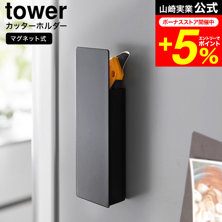 tower 山崎実業 隠せるマグネットカッターホルダー タワー キッチン 公式 マグネット 1933 1934 ホワイト ブラック / 冷蔵庫 カッター はさみ