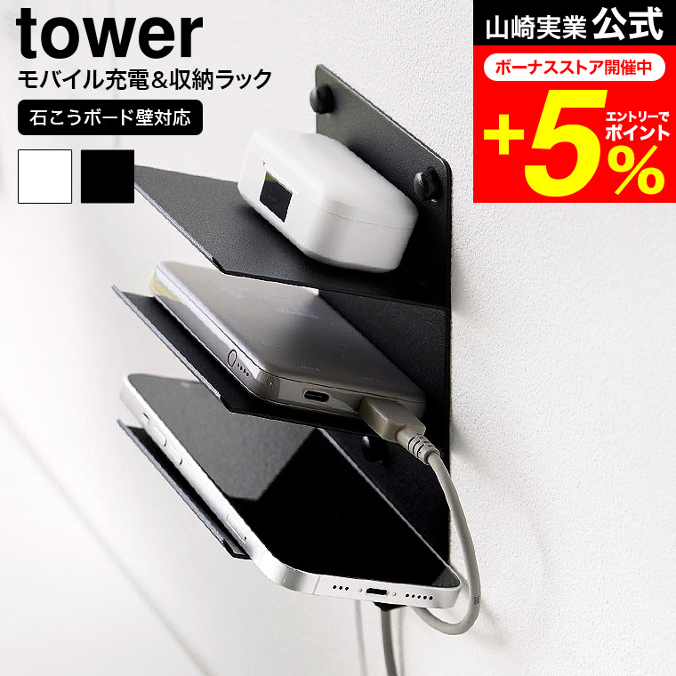 | ウォールモバイル充電&収納ラック タワー 3段 石こうボード壁対応 |