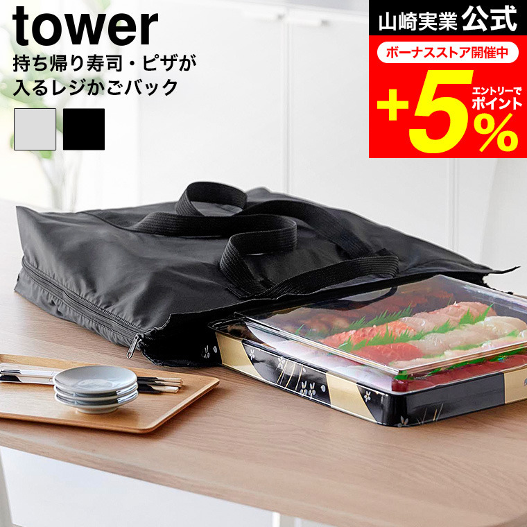 tower 山崎実業 洗える持ち帰り寿司・ピザが入るレジかごバッグ タワー 公式 2125 2126 ライトグレー ブラック 送料無料 / 収納バッグ