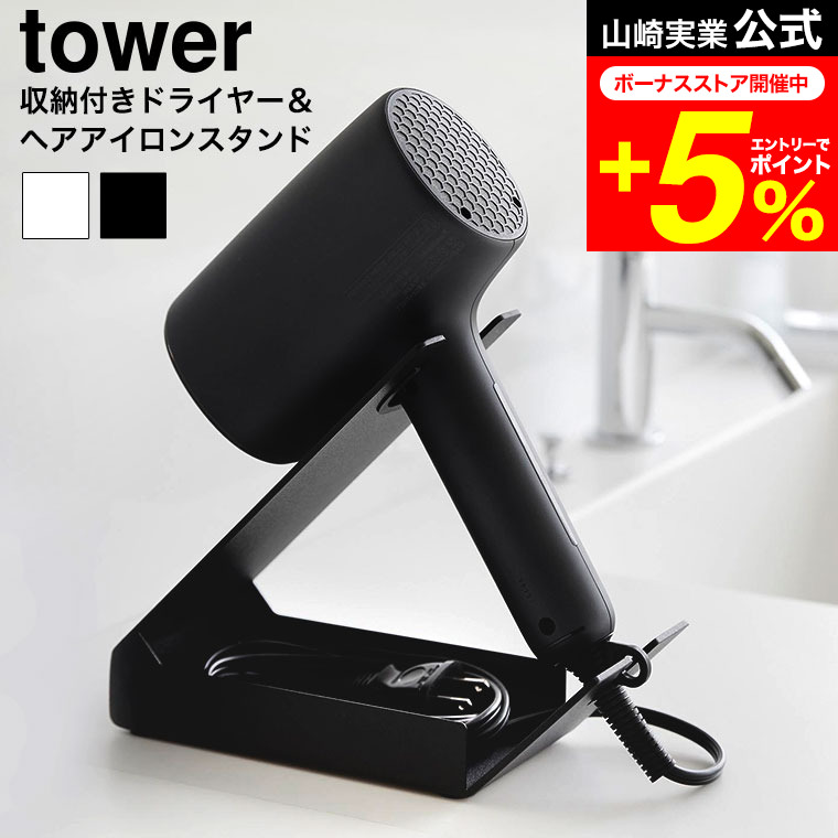 tower 山崎実業 収納付きドライヤー&ヘアーアイロンスタンド タワー 公式 1334 1335 ホワイト ブラック 送料無料 / ドライヤースタンド