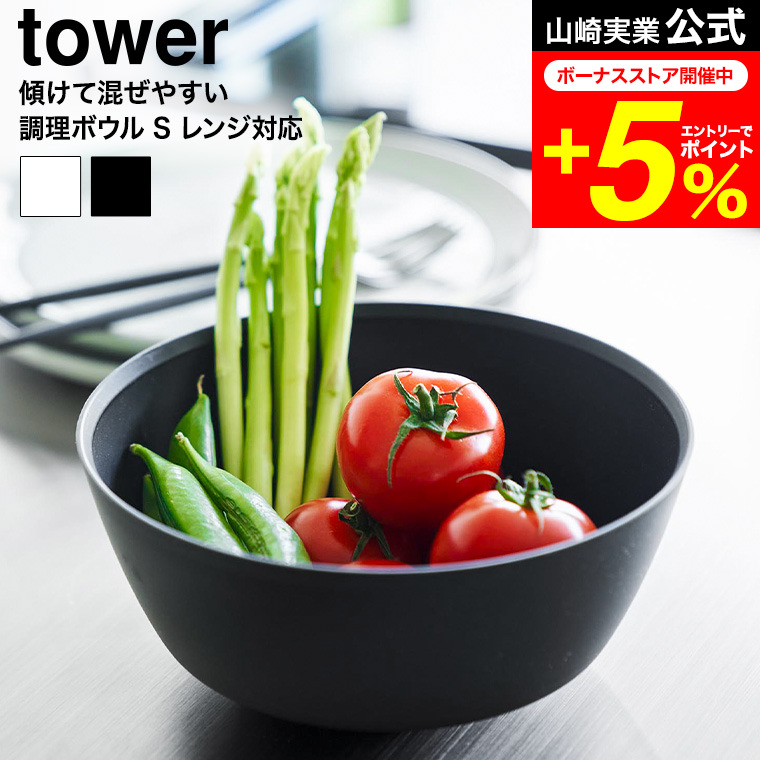tower 山崎実業 傾けて混ぜやすい調理ボウル タワー S 電子レンジ対応 公式 1385 1386 ホワイト ブラック / 800ml キッチンボウル プラスチック
