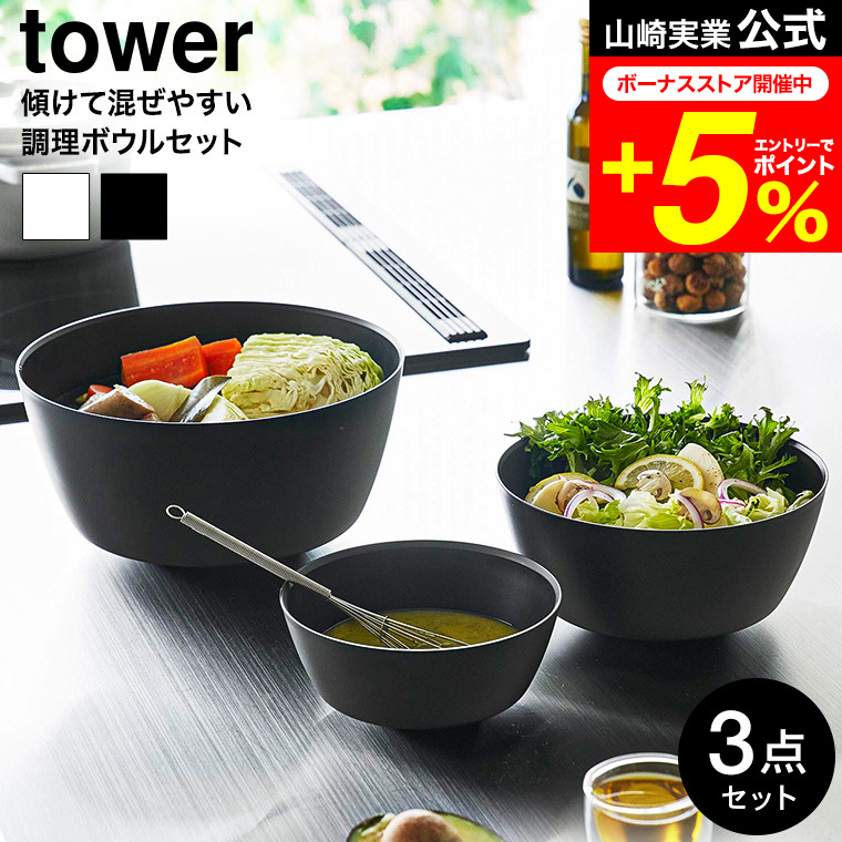 | 傾けて混ぜやすい調理ボウル タワー 3点セット 電子レンジ対応 |
