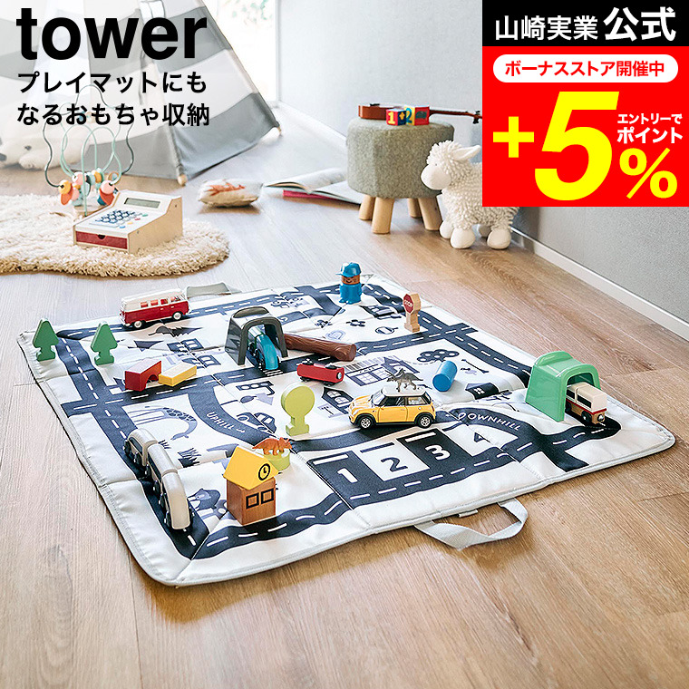 tower 山崎実業 プレイマットにもなるおもちゃ収納 タワー 公式 10169 ライトグレー 送料無料 / おもちゃ箱 おもちゃマット お片付け