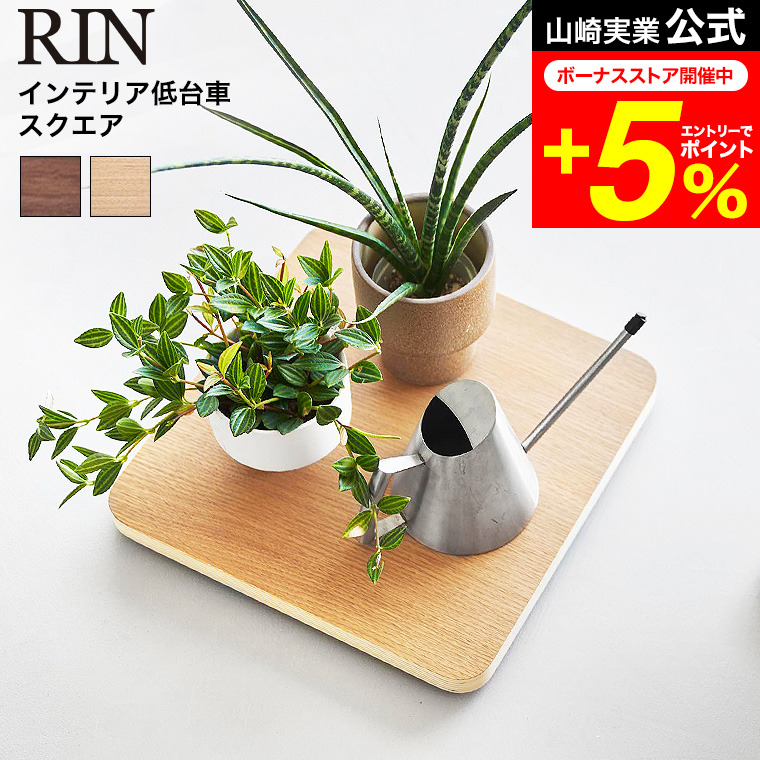 RIN 山崎実業 インテリア低台車 リン スクエア 公式 10064 10065 ブラウン ナチュラル 送料無料 / 平台車 耐荷重30kg 花台 観葉植物