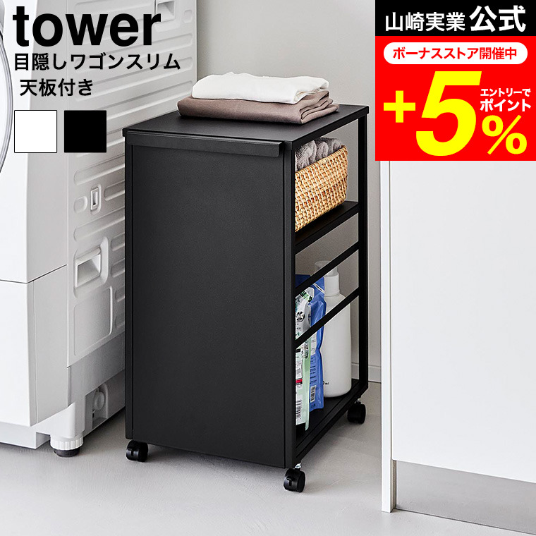 tower 山崎実業 目隠しワゴン タワー スリム 天板付き 公式 8470 8471 ホワイト ブラック 送料無料 / 2段 収納 ランドリーワゴン キッチンワゴン