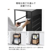 かさばる大きな物を目隠ししながら一括収納!食品類やペット用品、お子様の学用品まで様々な物をストックできるスリムワゴン。使わない時は裏返すことで収納物を目隠しできます。調味料のストックやかさばる大きな食品類を一括収納。備蓄食品やプロテイン等の健康食品の収納やペットシート、おもちゃ、ペットフードなどのペット用品の収納にもおすすめです。ランドセルや教材類などお子様の学用品の収納にも。頑丈なキャスターと取っ手付きなので移動もラクラク。可動棚板は収納物の高さに合わせて調節可能です。天板付きなので小物を置くこともできます。