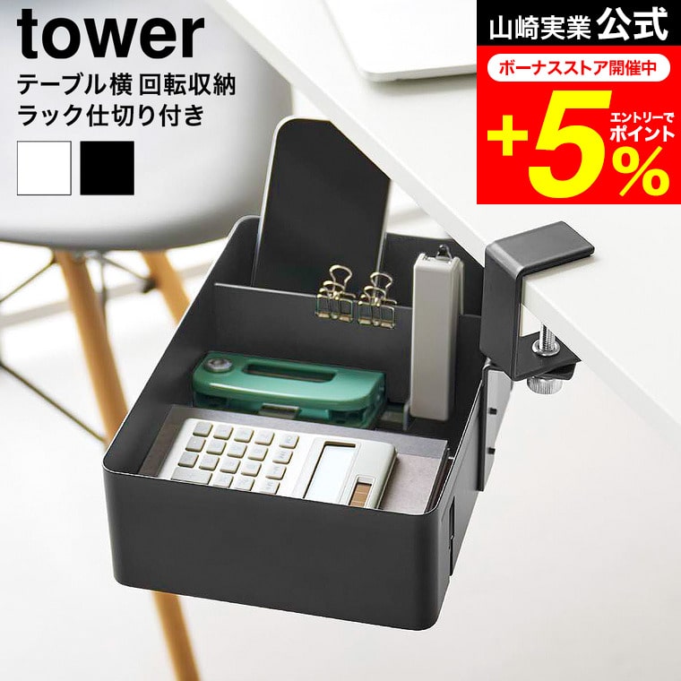 | テーブル横回転収納ラック タワー 仕切り付き |