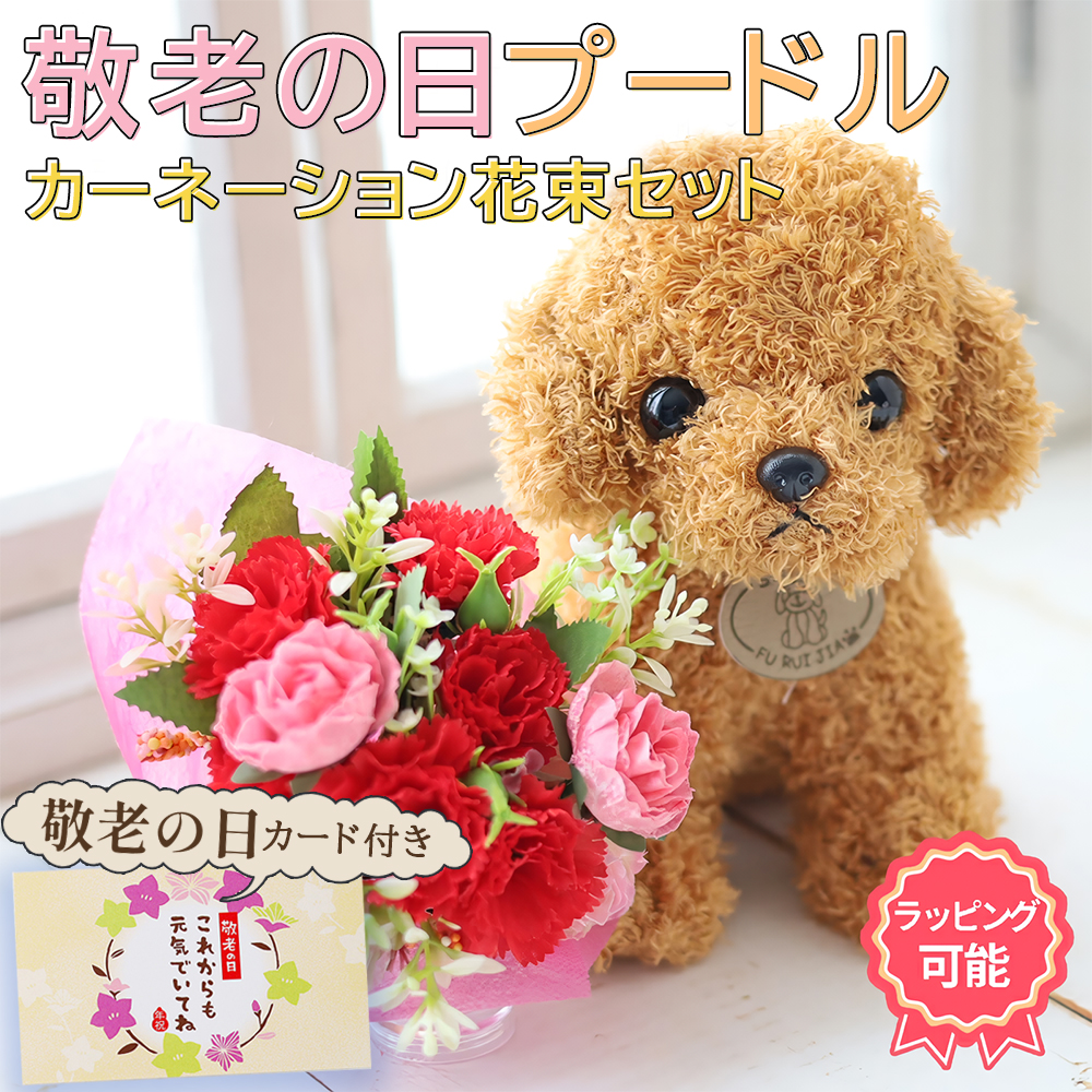 敬老の日 プレゼント ギフト 80代花 2025 70代 60代 80代 ぬいぐるみセット 日付指定 可能 送料無料 プードル 誕生日 花束 ブーケ