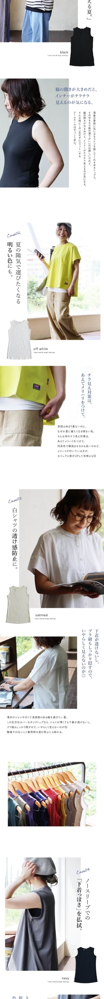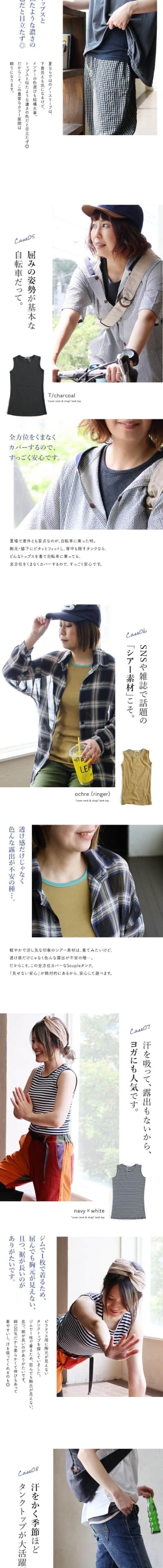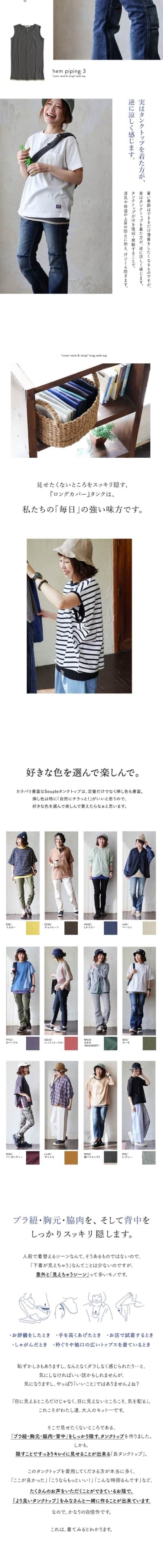 タンクトップ レディース 胸元 カバー ロング丈 インナー 綿100% コットン 大きいサイズ 肌着 下着 春 夏 秋 冬 パティ Souple スプル (メール便25)