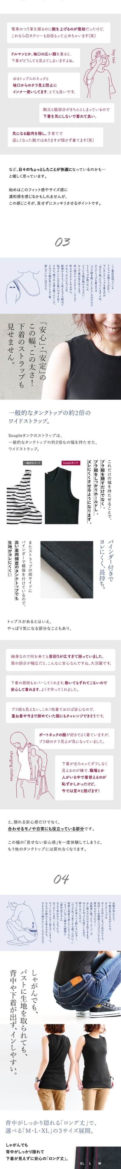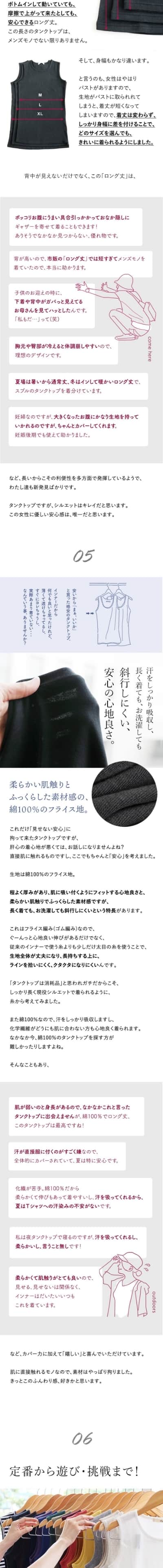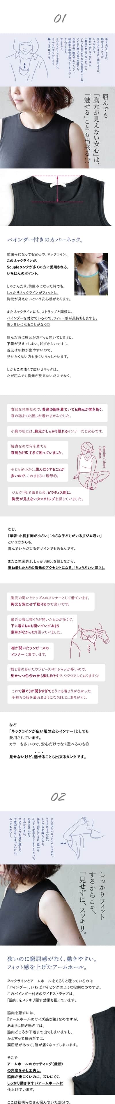 タンクトップ レディース 胸元 カバー ロング丈 インナー 綿100% コットン 大きいサイズ 肌着 下着 春 夏 秋 冬 パティ Souple スプル (メール便25)