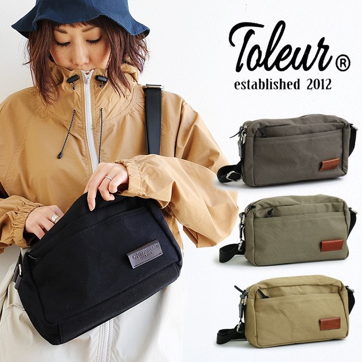 toleur ショルダーバッグ 鞄 カバン BAG スクエア ハリ加工キャンバス カウレザー 牛革 ジップ コットン 斜め掛け 肩掛け カジュアル