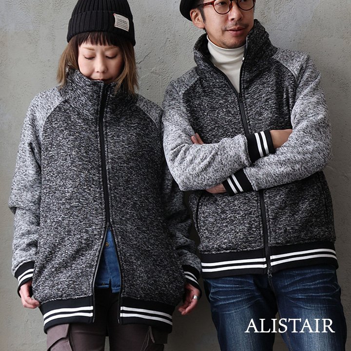 ブルゾン スタジャン メンズ レディース ボリューム ハイネック フリース 裏地付き 軽い 配色 ダブルジップ アウター パティ ALISTAIR アリステア