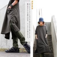 ワンピース ワンピ Tワンピ レディース 5分袖 5分袖 ポケット付き ヘンリーネック 前後2WAY ダブルフロント ツバメ 刺繍 抗菌 綿100% 天竺 裾 サイドスリット 着痩せ 体型カバー ゆったり カジュアル メンズライク PATY パティ