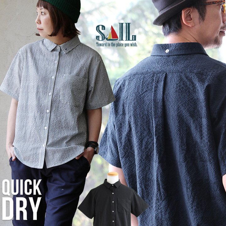 大人 カジュアル シャツ 半袖 5分袖 メンズ レディース 夏 涼しい ストレッチ シアサッカー ポケット カラーシャツ 刺繍 パティ SAIL セイル