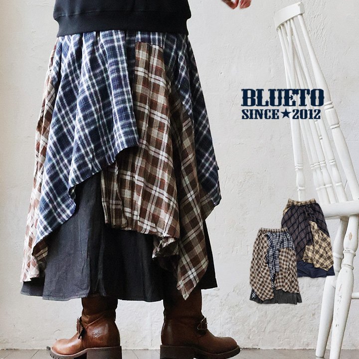 マキシスカート レディース スカート ロングスカート デニム チェック 大きいサイズ マキシ丈スカート ウエストゴム BLUETO ブルート