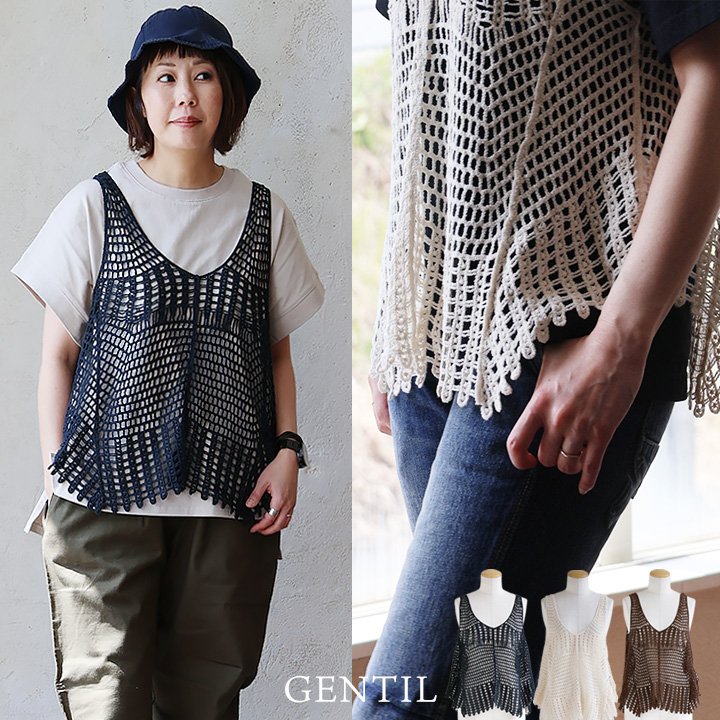 ベスト キャミソール レディース クルーネック 透かし編み ニット ポリエステル コットン 重ね着 パティ GENTIL ジャンティ (メール便50)