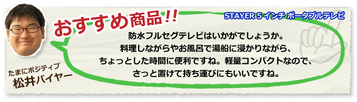 STAYER 5インチ 防水フルセグ ワンセグ ポータブルテレビ 録画機能搭載 ST-5VWP-FSB-WH ホワイト