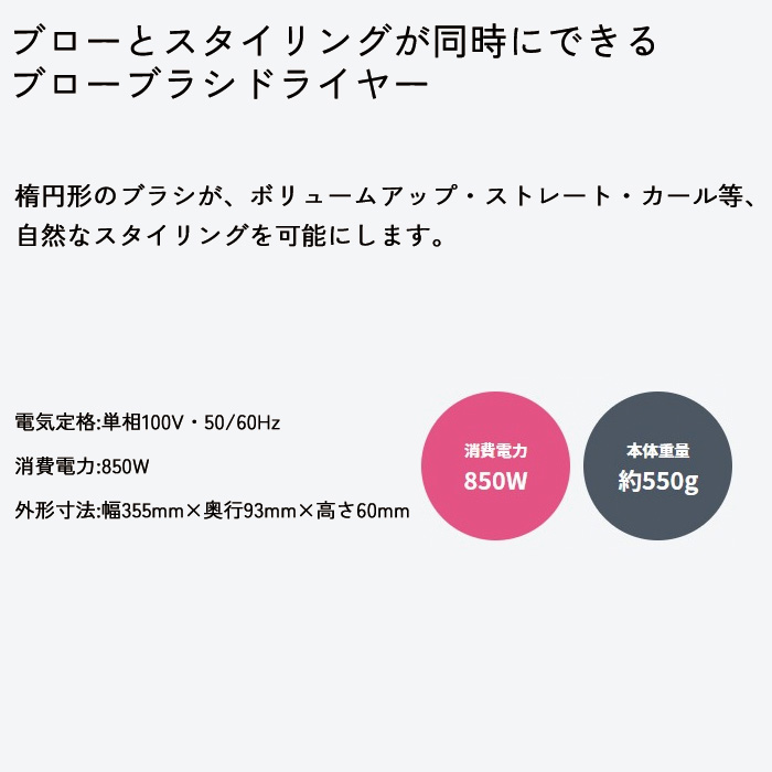 楕円の形状でクシ通りと髪のホールドを両立スタイリングしやすいフワッとしたボリューム感とスタイリングを実現。