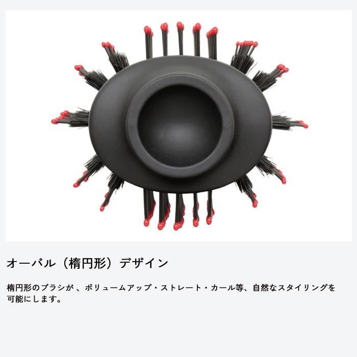 楕円形のブラシは、くし通りを良くするだけでなく、髪のホールドもでき、ストレート、カール等、自然なスタイリングができます。